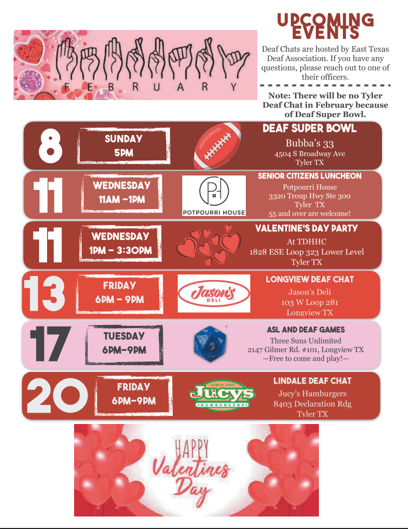 The Tyler Deaf and Hard of Hearing Center strives to be an all-inclusive ‘one-stop shop’ of deaf-friendly resources. We hope you enjoy and make use of our helpful information, resources, and services.